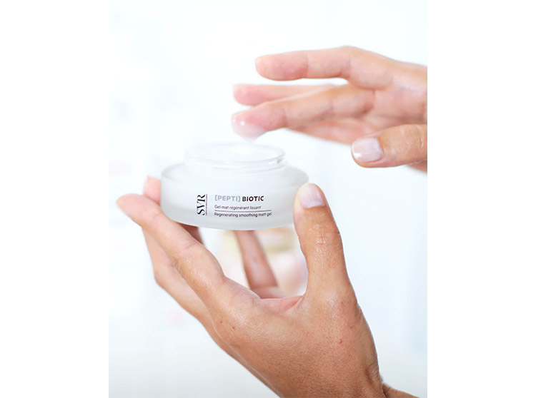 Si le microbiote cutané est déséquilibré, le vieillissement de notre peau est accéléré. Il faut donc le protéger. SVR apporte des PROBIOTIQUES PASTEURISES pour renforcer la barrière cutanée. Si nous avons choisi ces souches, c’est parce que le processus de pasteurisation qu’elles ont connu leur permet de conserver leurs propriétés probiotiques : renforcer et protéger la barrière cutanée tout en l’hydratant.