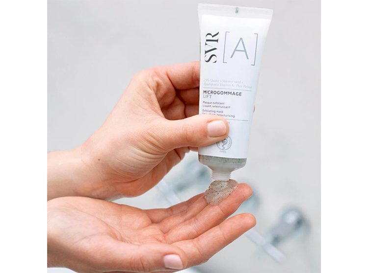 Pour cibler à la fois l’accumulation des cellules mortes et les signes de l’âges, le Laboratoire SVR a développé une formule inédite : Le Microgommage Lift enrichi en Vitamine A, un masque exfoliant en 3 steps pour 3 actions anti-âge :