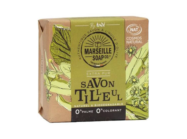 Tadé Savon de Marseille Tilleul est un savon naturel, cuit de façon artisanale à base d'huiles vierges. Il convient à tous les types de peaux même très délicates. Testé dermatologiquement. 99.97% du total des ingrédients sont d'origine naturelle. Cosmos Natural certifié par Cosmécert selon le référentiel Cosmos.