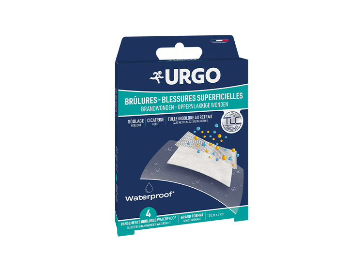 Le pansement stérile URGO Brûlures, Blessures superficielles est destiné au traitement des brûlures du 1er degré et du 2nd degré superficiel (cloque) ainsi que des blessures superficielles (écorchures, coupures).