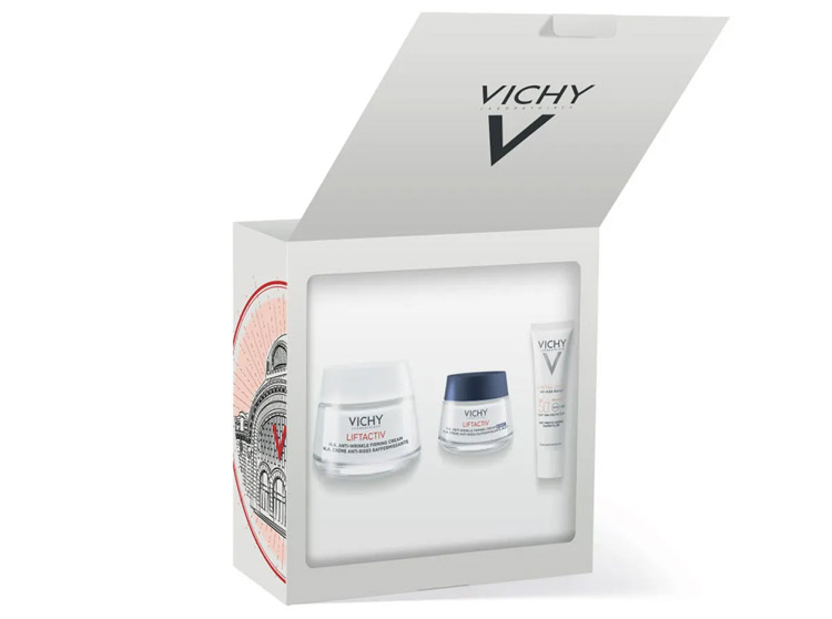 Le coffret de Noël LiftActiv Protocole Rides et Fermeté conçu par Vichy sera l'allié idéal des personnes souhaitant s'offrir ou offrir une routine beauté ciblée rides et fermeté. Il offre une routine de trois soins essentiels, vous permettant une peau plus ferme, et moins de rides et ridules : la Crème raffermissante anti-rides de jour, la Crème raffermissante anti-rides de nuit ainsi que le UV Age Daily SPF50+. Ensemble, ces produits prennent soin de vous et de votre bien-être, le tout en atténuant rides et en redonnany fermeté !