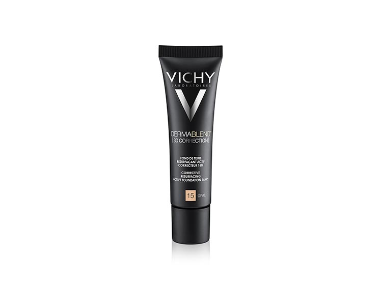 Appliquez le fond de teint resurfaçant actif correcteur 16h Dermablend 3D correction de Vichy chaque matin sur le visage et le cou propres et secs.