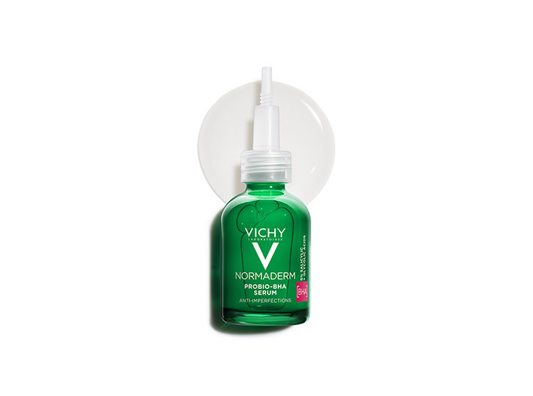 Pour lutter contre les imperfections et améliorer l’état de la peau, les Laboratoires Vichy ont développé le sérum Normaderm Probio-BHA. Issu de l’expertise de la science de l'Exposome, ce sérum anti-imperfections est hautement concentré en actifs dermatologiques pour corriger les boutons rouges et points noirs causés par l'acné hormonale. Il contient de l’acide salicylique et de l’acide glycolique, deux ingrédients exfoliants à l’effet peeling doux, et des fractions de probiotiques cultivés dans l'eau volcanique de Vichy pour booster la régénération cellulaire et renforcer la barrière cutanée.