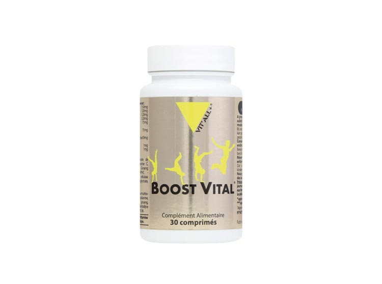 Vit'All+ Boost Vital est un complément alimentaire riche en vitamines, minéraux et extraits de plantes.